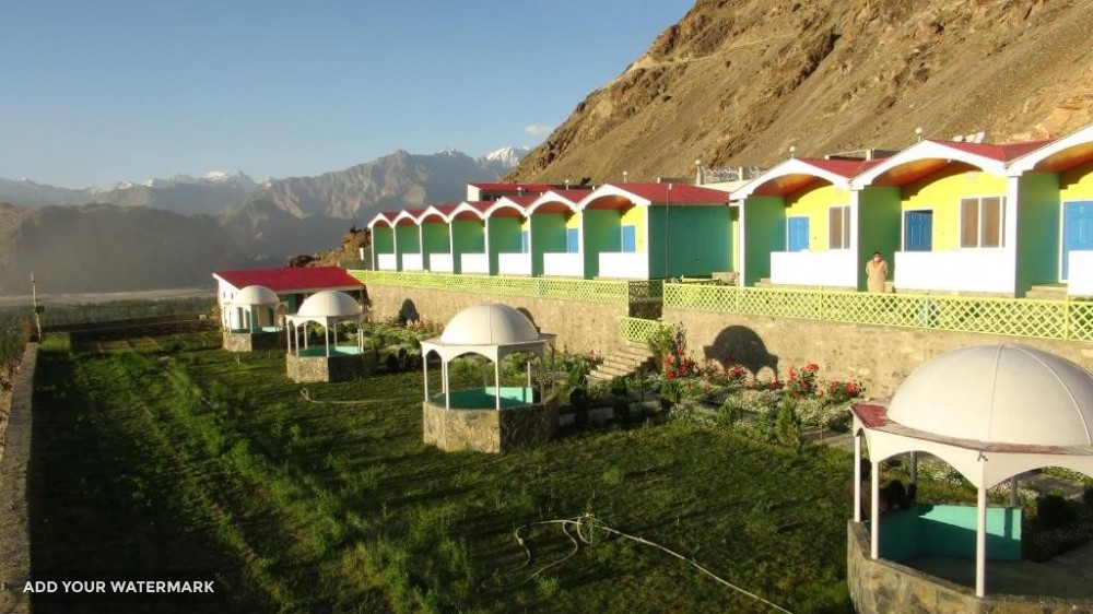 Hotel Mountain Lodge Skardu features a restaurant, free bikes, a fitness center and bar in Skardu. Each accommodations at the 5-star hotel has river views, and guests can enjoy access to a garden and to a terrace. The accommodations provides a 24-hour front desk, airport transfers, room service and free WiFi.